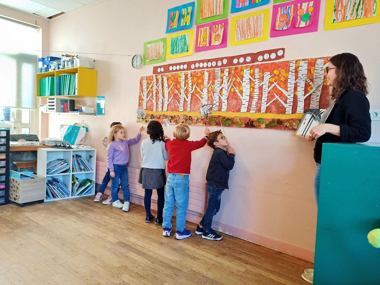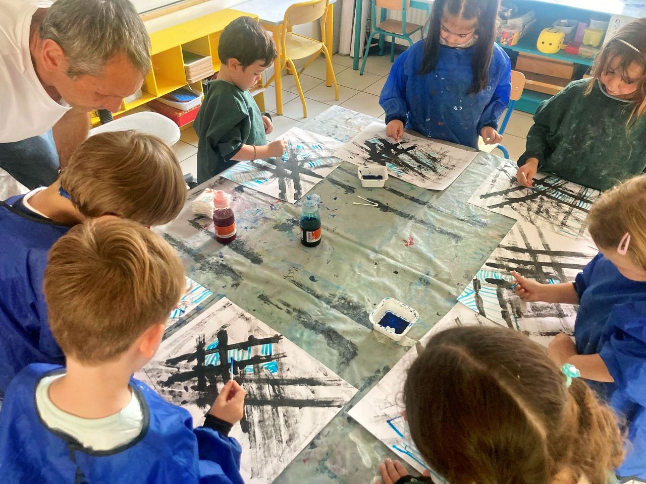 Les ateliers de lecture et d'origami animés par des enseignantes à la retraite ont été très appréciés. Les élèves ont également travaillé sur des thèmes variés, comme la convention internationale des droits de l'enfant, le cycle de vie des animaux, et ont réalisé des poésies collectives. Les concours de coloriage codés et l'analyse d'œuvres de Paul Klee ont permis d'explorer les couleurs primaires et secondaires.